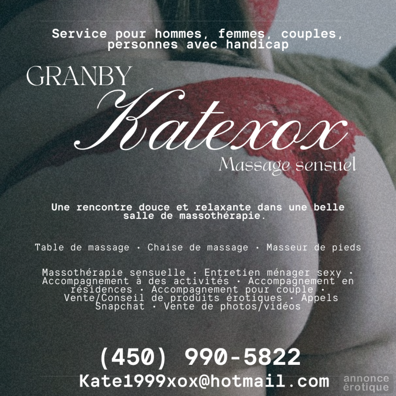 Massothérapeute en formation, je propose comme service principal des massages de détente sensuels offerts dans un environnement chaleureux, propice au confort et à la détente. Je propose également plusieurs autres services pour vous combler et combler vos fantasmes.